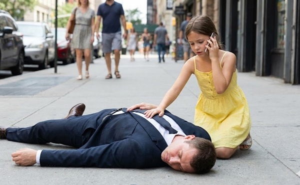 “Help!” she yelled at the passing crowd, her voice cracking but firm. “Someone call 911! He’s having a medical emergency!”