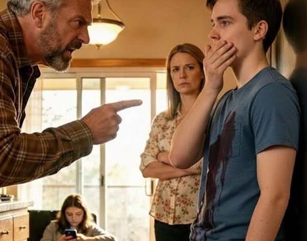 I sat back, wiping blood from my lip with the back of my hand. My younger sister, Lily, was frozen on the couch, her eyes wide with terror. Dad stood over me like he’d won a prize.