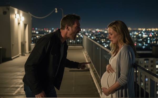 The winter wind in Chicago howls differently on the 45th-floor rooftop of a Gold Coast high-rise. It’s a sharp, demonic whistle that pierces through layers of wool and cuts straight to the bone. Mia clutched her eight-month pregnancy bump, shivering uncontrollably. Her thin maternity coat was no match for the sub-zero temperatures—or the chilling silence coming from the man standing across from her.