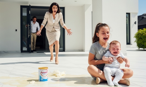 She dropped the bottle deliberately. Milk splashed across the marble floor as my children flinched. Ava closed her eyes and wrapped her arms tighter around her baby brother, trying to shield him from whatever was coming next.