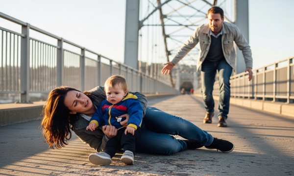 I came back to consciousness in pieces. The bridge railing. The river below. The sound of the water. Nora, still in the carrier, still against my chest, still asleep — somehow, impossibly, still asleep.