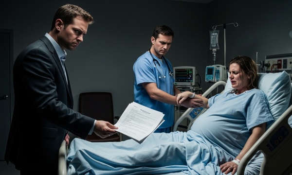 The nurse exchanged a look with a hospital administrator who was standing by the door holding a clipboard. The administrator stepped forward. She was a woman who looked like she delivered bad news for a living.