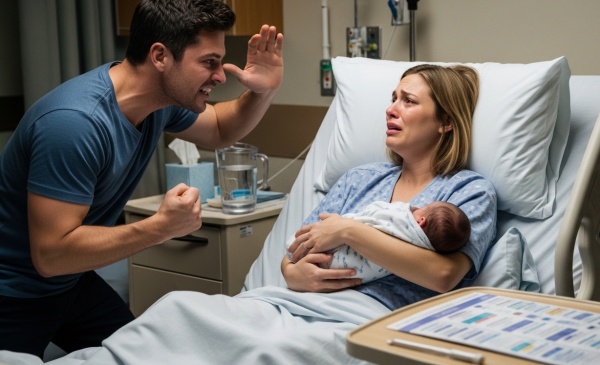 I was still in the hospital bed, holding my two-hour-old son, when my husband saw the birthmark on our baby’s face and said the words that shattered me: “You couldn’t even do this right.” He stormed out of the delivery room without looking back, leaving me sobbing and broken.